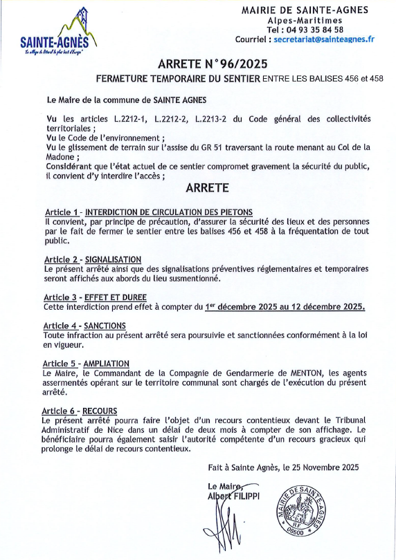 Route de la colline et Pian Alamana fermé du 6 janvier au 31 décembre 2025